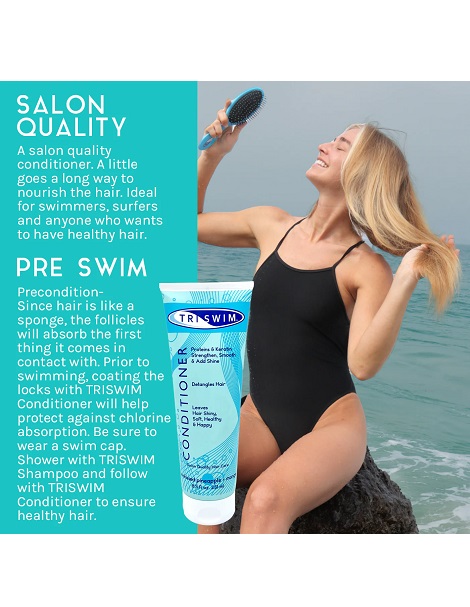 普通的洗護用品是不能夠清除掉泳後頭髮和身體上附著的氯元素和銅離子;只有經過特殊的過程 "抓取,隔離和去除" 附著在身體上的氯和銅。TRISWIM專有獨特配方,含5種 "隔離介面(Sequesting agents)",能有效去除氯,銅及絕大部分附著和沉積在身體上的有害物質。TRISWIM還含有比一般藥妝更大量的有機蘆薈活性物質,維生素A,E和原B5,能有效減輕夏季游泳時日曬對頭髮和身體的損傷 (從對身體的損害角度來看,日光也是一種氧化劑)。